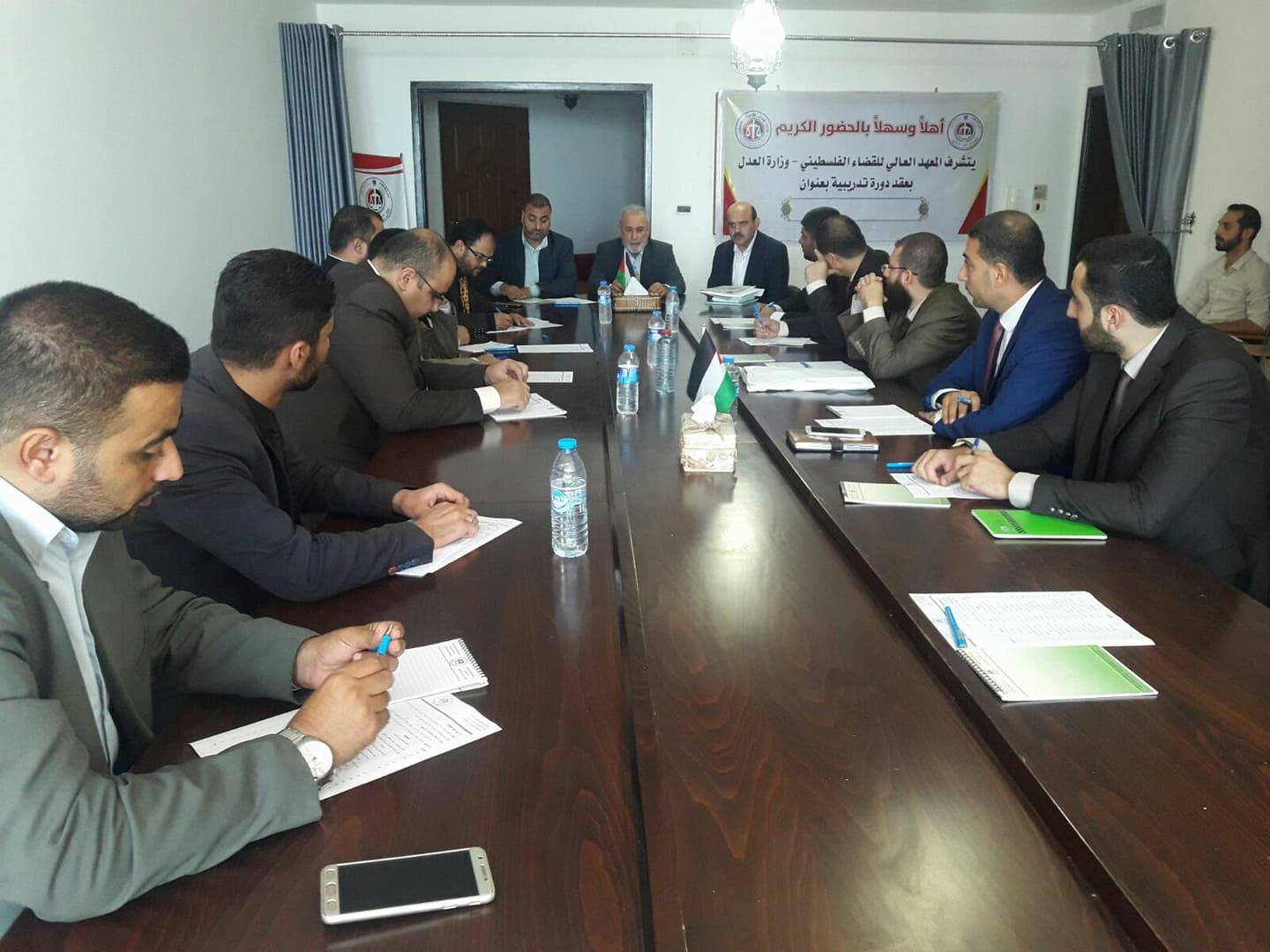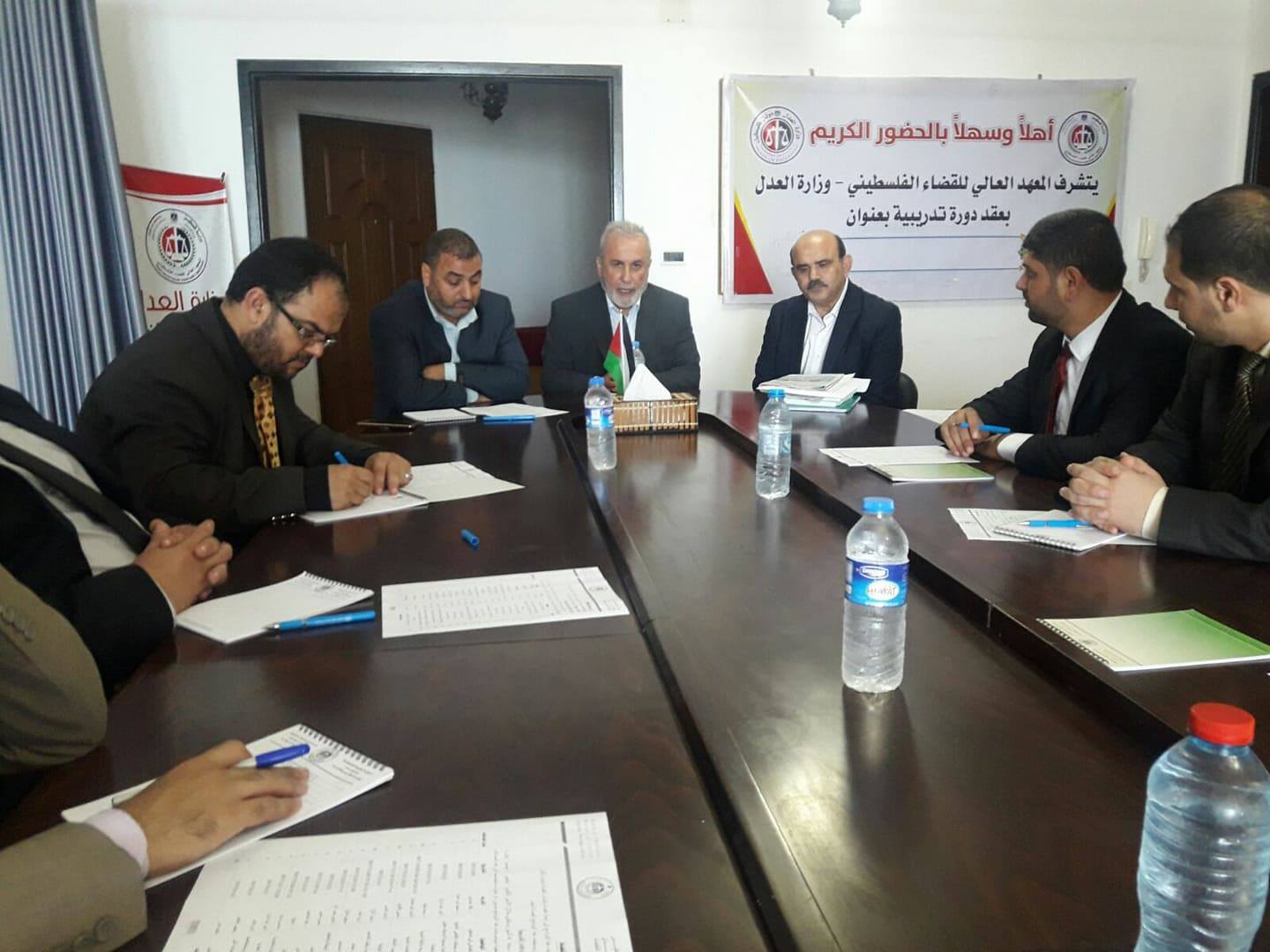 افتتح المستشار عبد الرؤوف الحلبي رئيس المجلس الأعلى للقضاء برنامج تدريبي لقضاة الصلح الذين تم تعيينهم مؤخراً بواقع (84) ساعة تدريبية، وذلك في المعهد العالي للقضاء وبحضور رئيس المكتب الفني والتفتيش القضائي بالمجلس أنور أبو شرخ ود. نافذ المدهون عميد المعهد العالي للقضاء ود. محمد أبو مصطفي مدير الشؤون الإدارية والمالية وأ. علي عطا جحا رئيس قسم التدريب المستمر بالمعهد.