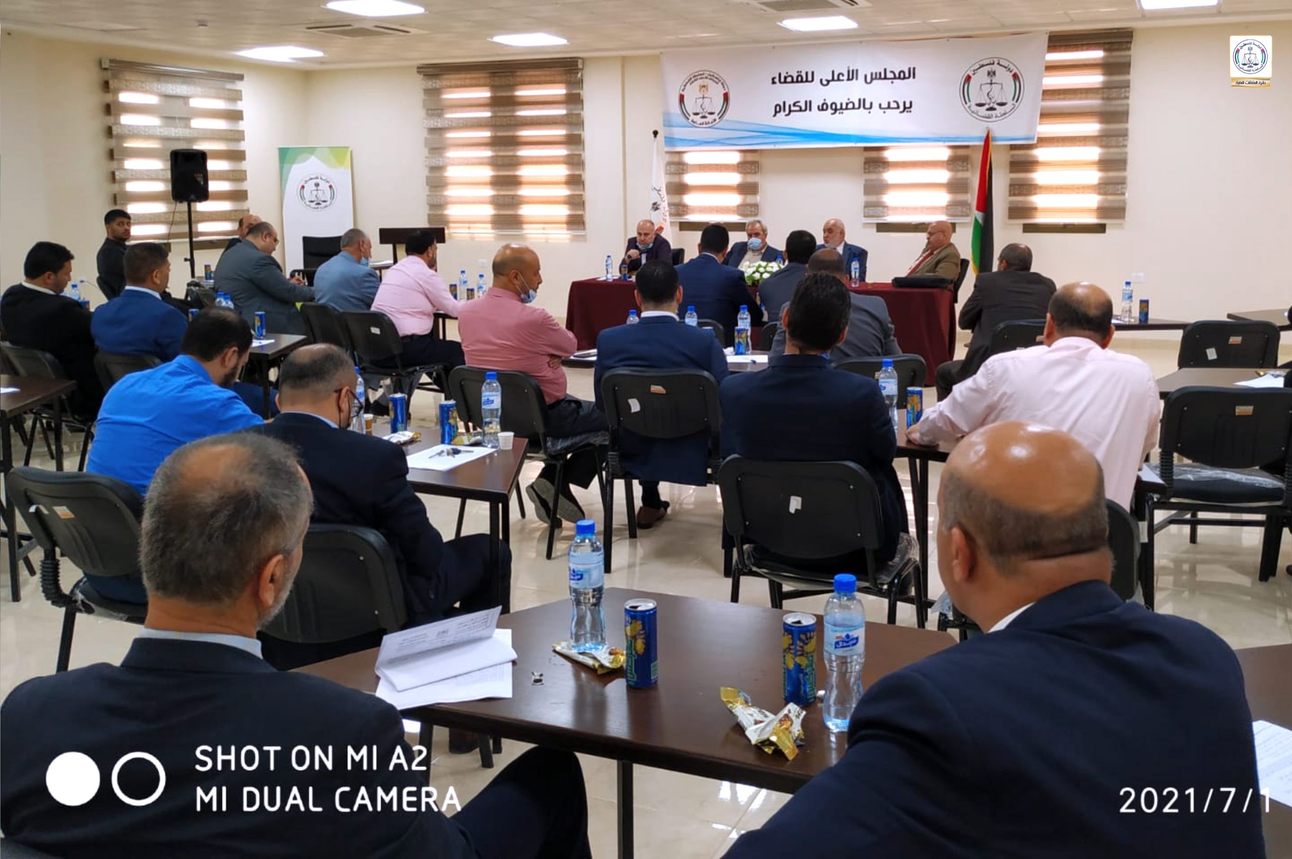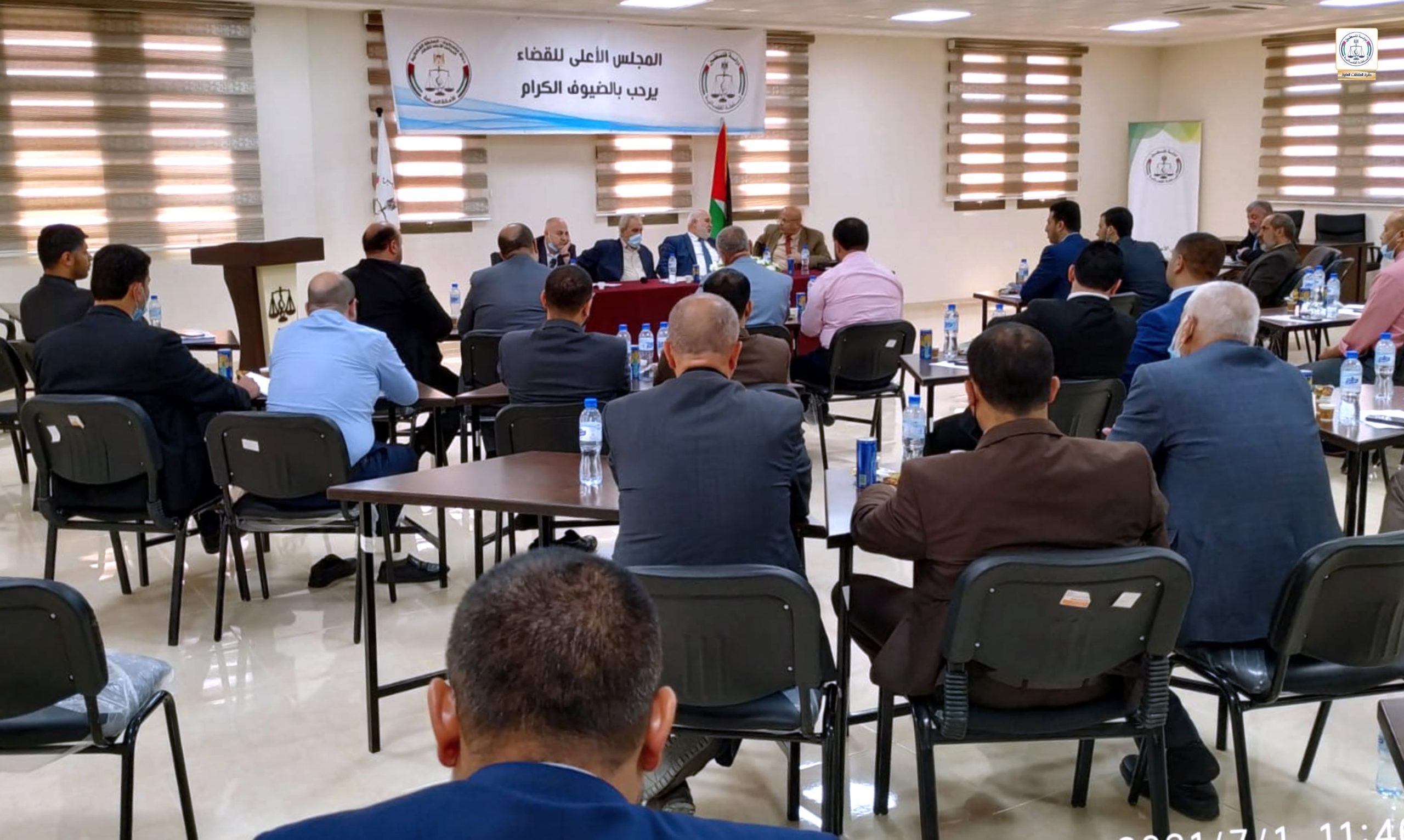 عقدت الأمانة العامة للمجلس الأعلى للقضاء وبالتعاون مع المكتب الفني ورشة العمل الشهرية لقضاة محاكم البداية والصلح بحضور المستشار محمد عابد رئيس المجلس الاعلى للقضاء بهدف تبادل الخبرات القانونية ومعالجة الإشكالات التي تواجههم بالعمل القضائي لتسريع إجراءات التقاضي.