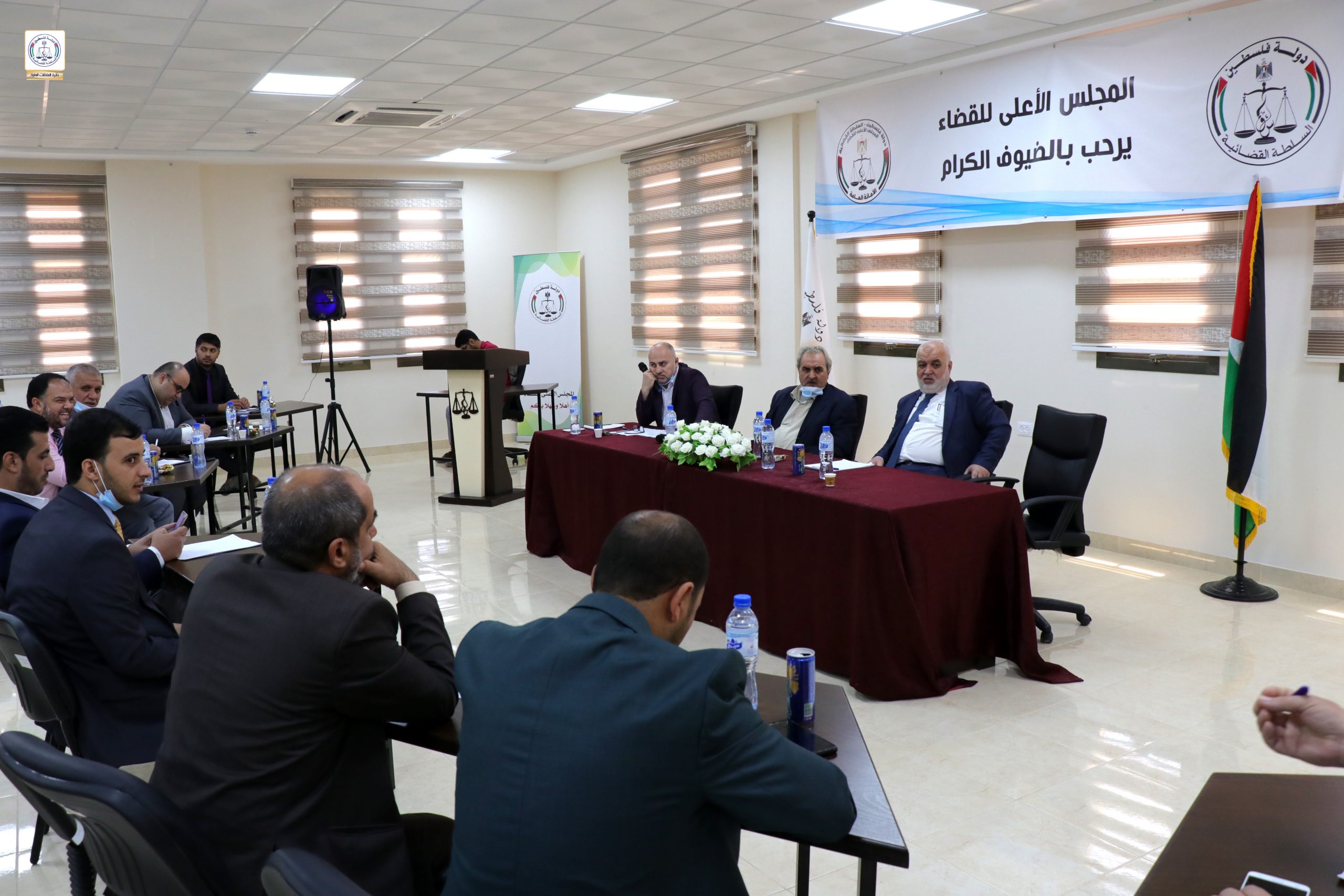 وأدار الورشة المستشار أكرم كلاب رئيس المكتب الفني وبمشاركة الأمين العام المستشار أشرف فارس والذي حاضر في القضايا الجزائية، والمستشار زياد ثابت قاضي المحكمة العليا والذي تناول القضايا المدنية. وشهدت الورشة نقاشاً مثمراً وبناءً حول العديد من القضايا التي تهم القاضي أثناء عملهم.