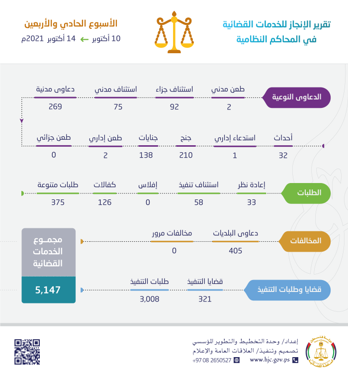 تقرير الإنجاز للخدمات القضائية في المحاكم النظامية الأسبوع الحادي والأربعين