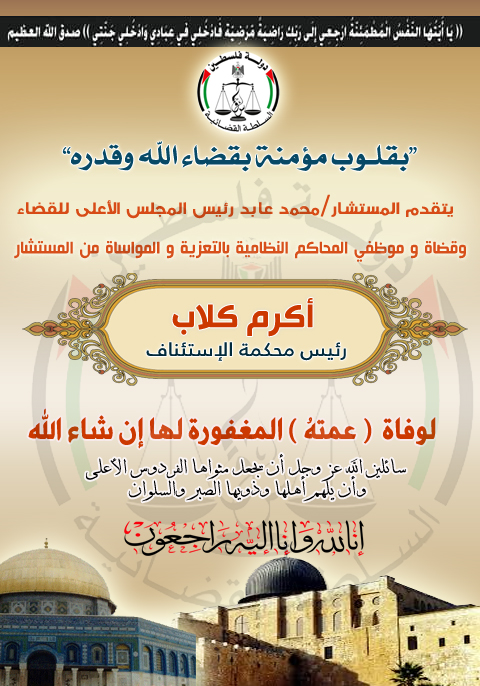 يتقدم رئيس المجلس الأعلى للقضاء وقضاة و موظفي المحاكم النظامية بالتعزية من المستشار/ أكرم كلاب
