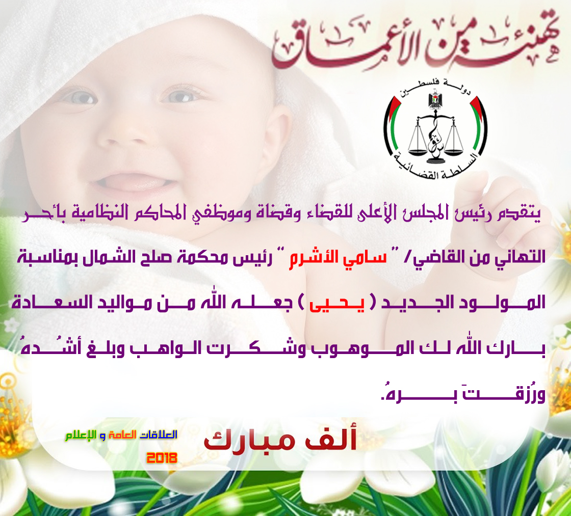 يتقدم رئيس المجلس الأعلى للقضاء وقضاة و موظفي المحاكم النظامية بالتهنئة للقاضي/ سامي الأشرم