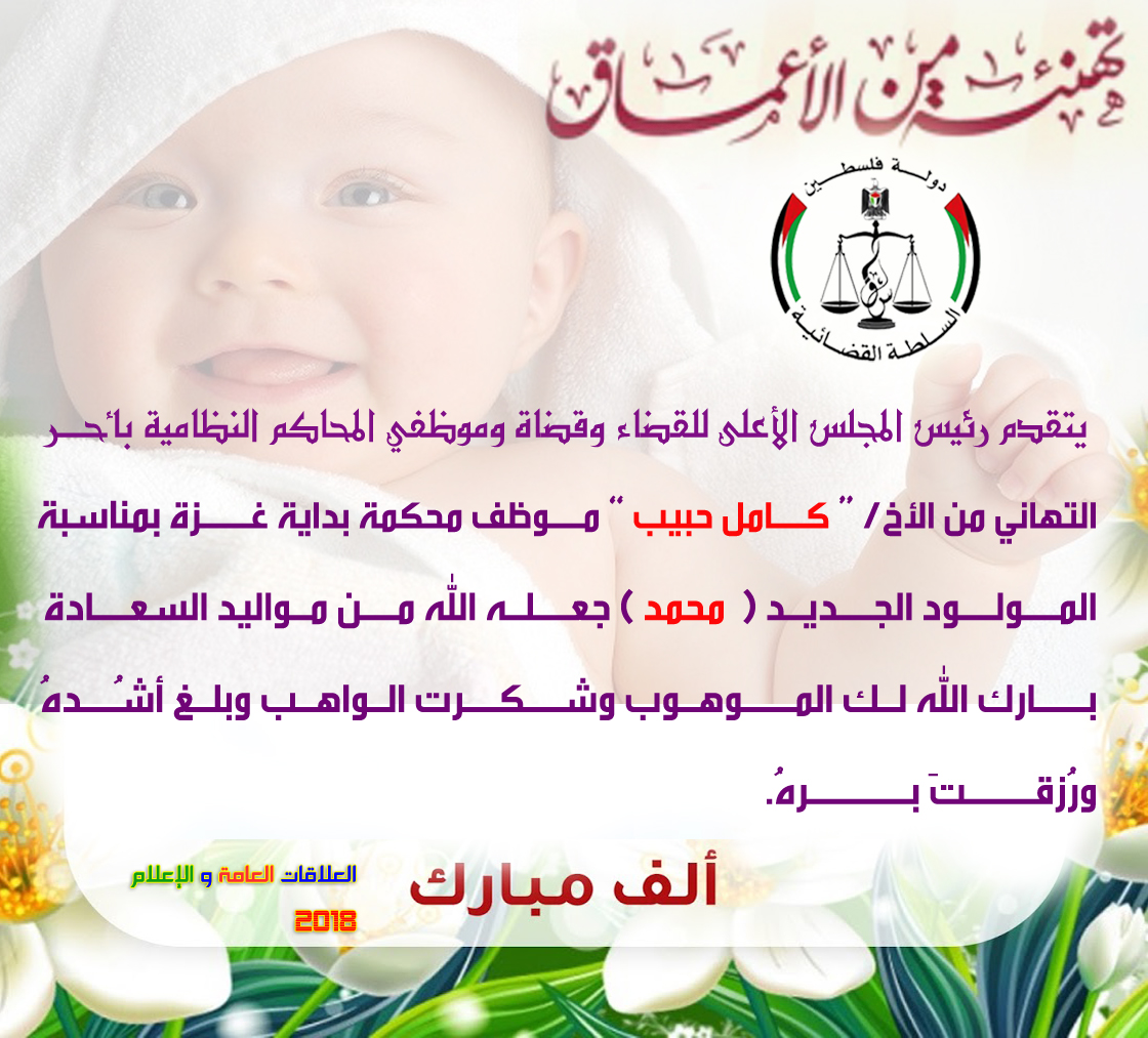 يتقدم رئيس المجلس الأعلى للقضاء وقضاة و موظفي المحاكم النظامية بالتهنئة للأخ/ كامل حبيب